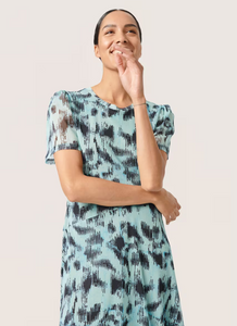 Get ready to steal the spotlight with the Anaika Dress. Its crew neck and puffed sleeves add a touch of whimsy to the all-over pattern. Perfect for any occasion, you'll be the talk of the town in this unique and playful dress!