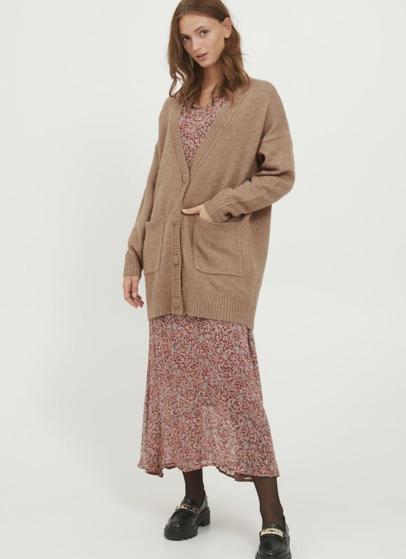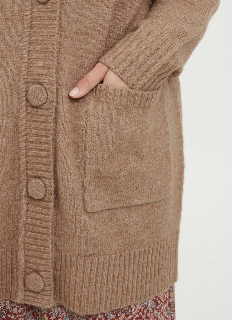 La couleur, les boutons en tricot, le Cardigan Okira ! Que demander de plus d'un cardigan mignon et confortable ? On adore les boutons style tricot, les deux poches avant et le style mi-long - et vous aussi !