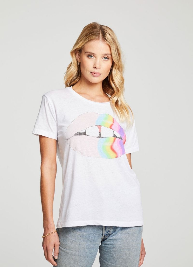 Sentez-vous technicolor avec le t-shirt Rainbow Lips. Coupe régulière avec encolure dégagée.