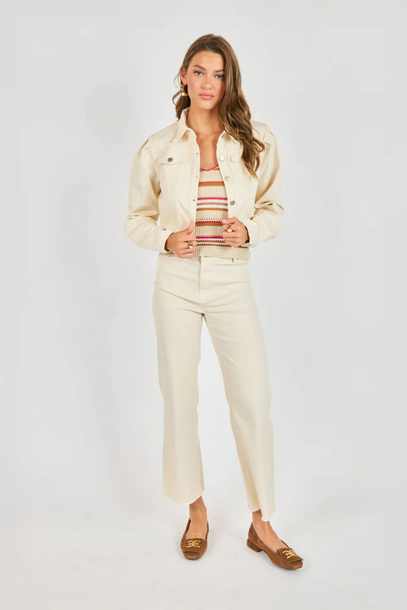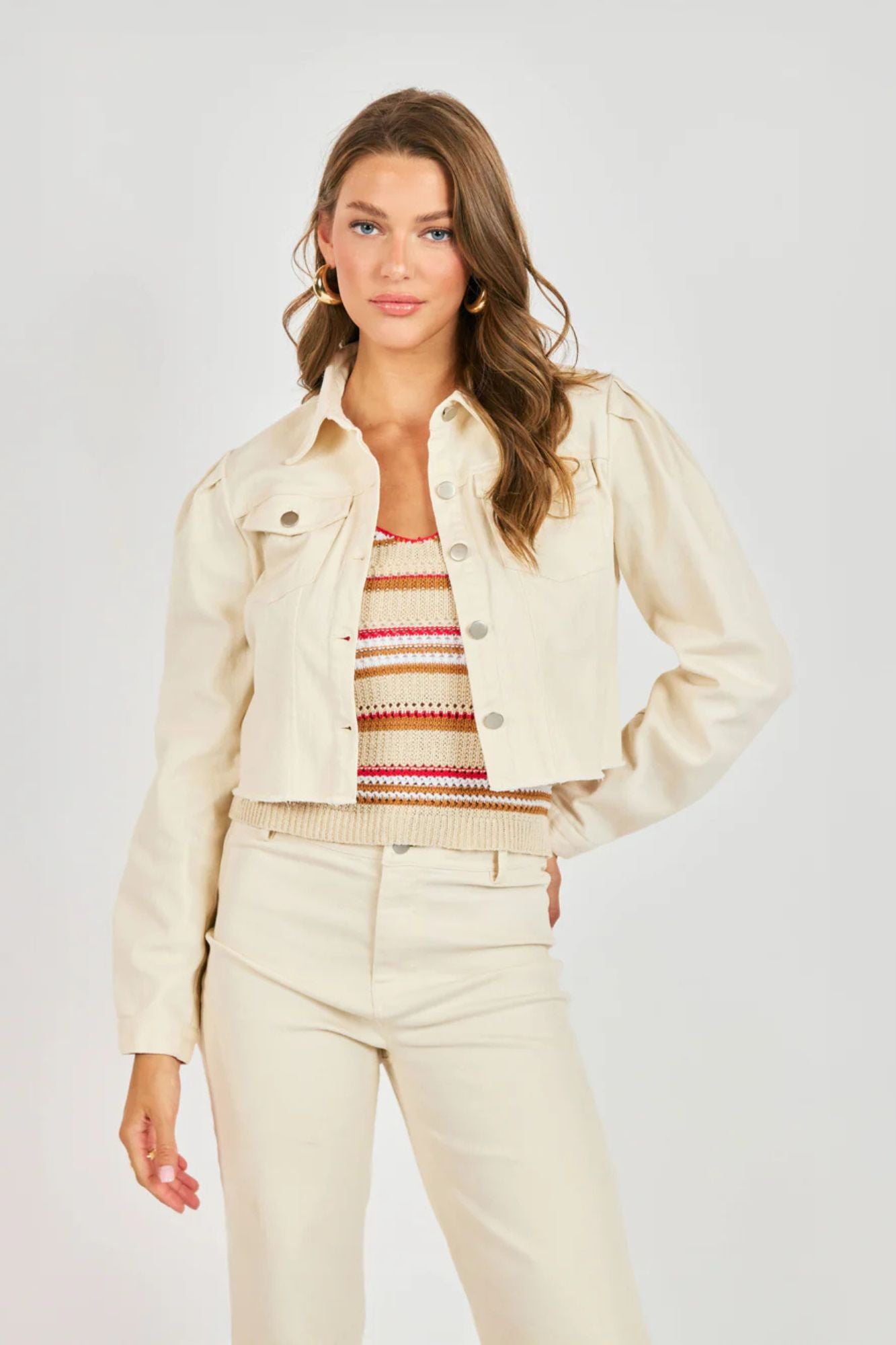 The Clear Eyes Denim Jacket reimagines a timeless classic with contemporary design details. Pleated sleeves create a modern shoulder silhouette, while the cropped raw hemline delivers an effortlessly relaxed vibe with subtle distressing. A structured point collar frames the neckline with crisp tailoring, and dual chest pockets blend functional style with authentic character. Perfect for layering or wearing solo, this jacket bridges heritage craftsmanship with minimalist aesthetics.