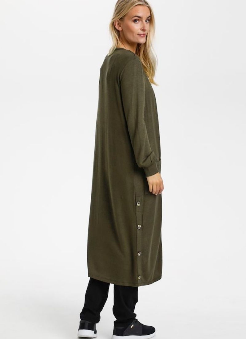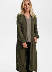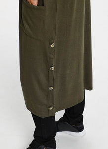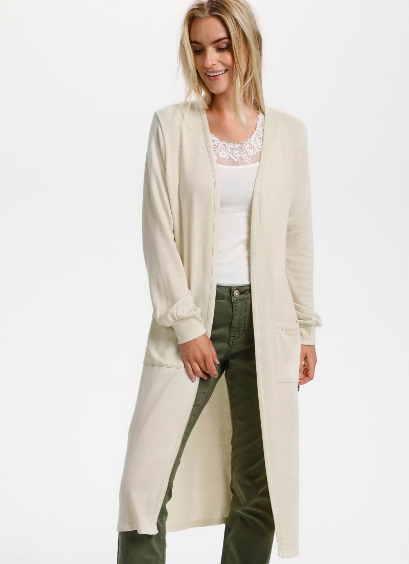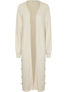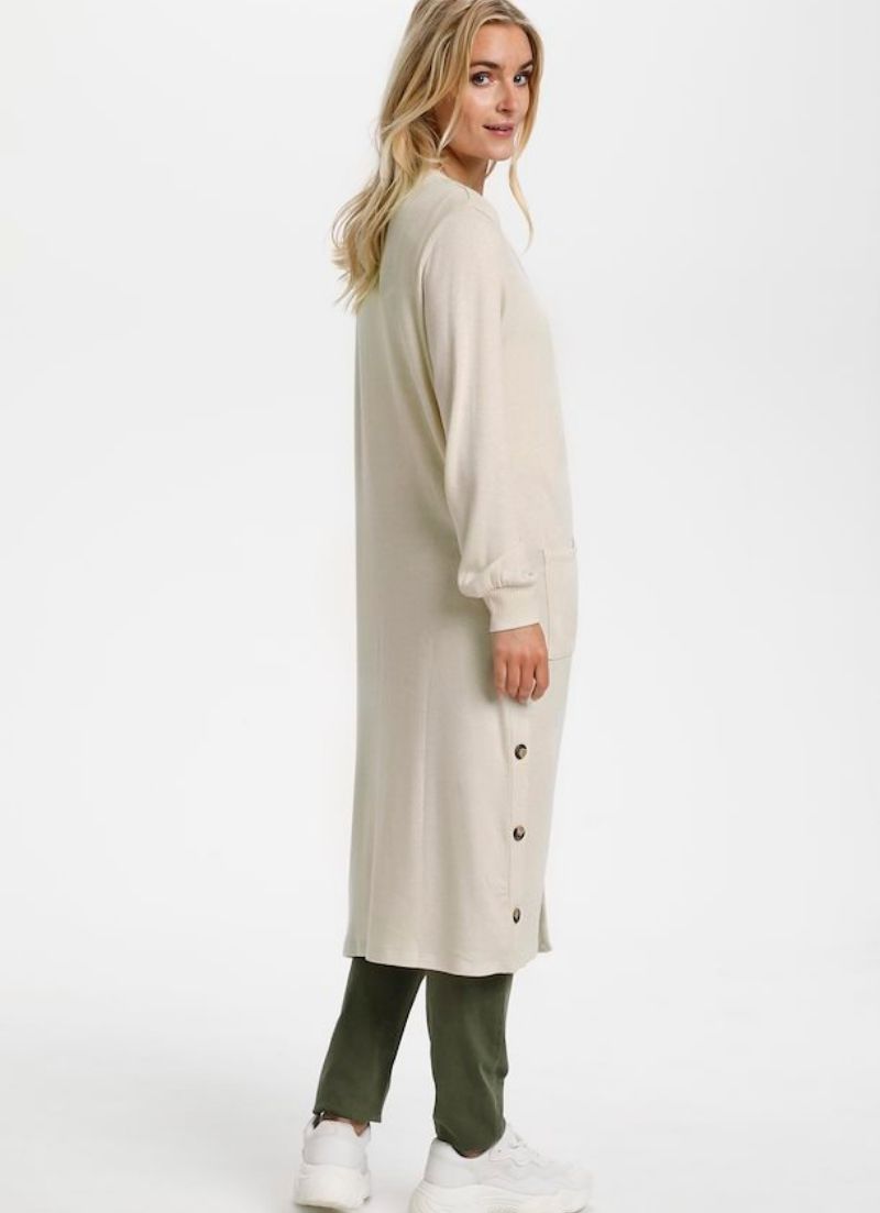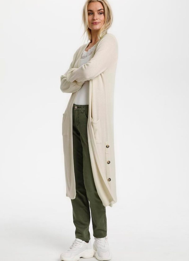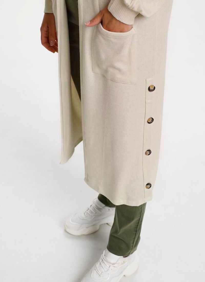 Le Sally est un cardigan long qui tombe juste en dessous du genou. Modèle ouvert sur le devant, poches avant, bouton latéral et revers ballon. Le Sally est un cran au-dessus de votre vieux cardigan uni, en deux couleurs, il s'accordera avec tout votre garde-robe.