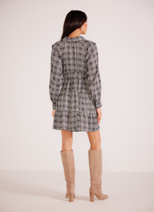 Add a pop of playfulness to your wardrobe with our Delphine Mini Dress. Featuring a bold geometric print and a classic shirt-style collar, this dress is perfect for those who don't take themselves too seriously. (Bonus points for mastering those double meanings!)