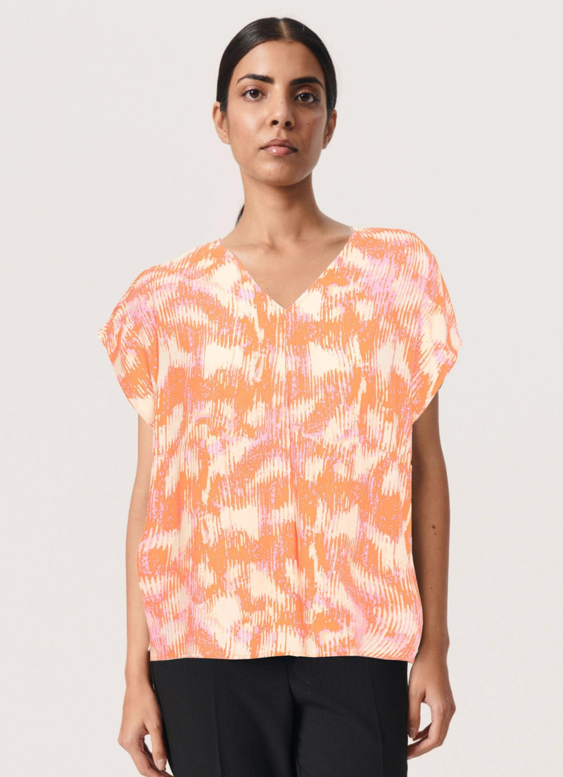 Introducing the Dusine Marija Top: a playful printed blouse that will elevate your wardrobe. With its v-neck design, this top is perfect for a casual day out or a night on the town. Add a touch of whimsy to your wardrobe with this must-have piece.