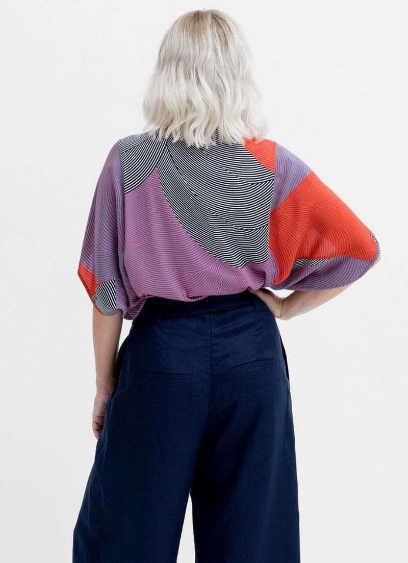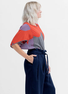Le Valter Tee est un haut contemporain avec un imprimé saisissant et abstrait. Avec des manches chauve-souris modernes, ce haut drape magnifiquement le corps pour une finition raffinée et élégante.