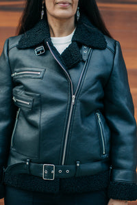 T La veste Quinn ajoute une chaleur supplémentaire au design classique de la veste de moto avec une doublure douce en sherpa.