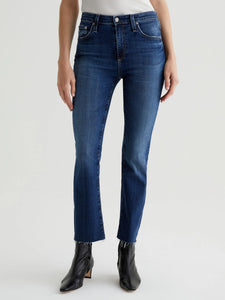 Step into style with the Farrah Boot Crop! These high-rise bootcut jeans have a chic, raw hem and a flattering skinny fit through the legs. Made from stretch denim for all-day comfort, these jeans have a vintage vibe with a dark indigo wash and faded details. Perfect for any occasion!