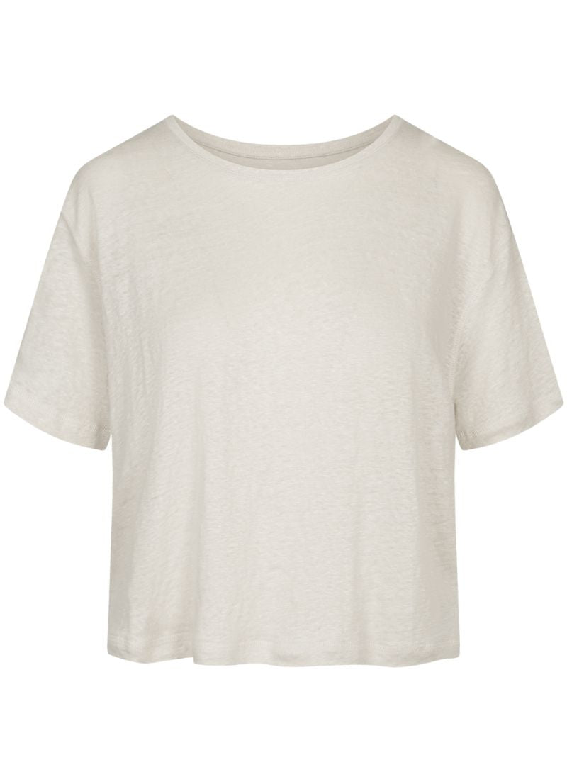 Le Ivalo Tee est un t-shirt boxy et décontracté fabriqué à 100 % en lin. Le tee-shirt a des manches courtes et une encolure ronde. La structure du lin rend le tee-shirt légèrement transparent.