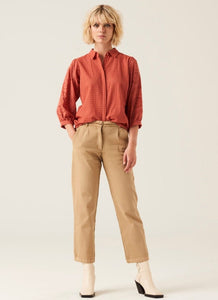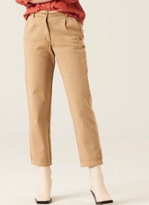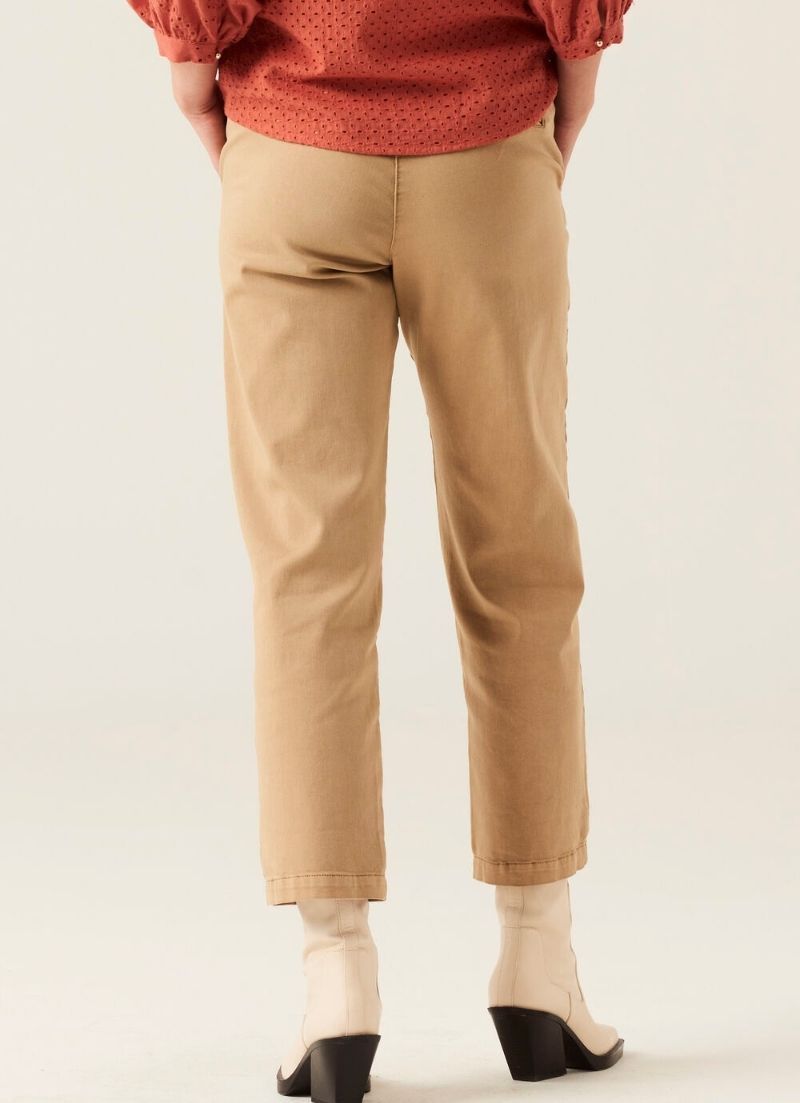 Le pantalon Tan Chino a une coupe droite, une taille mi-haute et peut être fermé avec un bouton et une fermeture éclair. Dispose également de deux poches latérales. Le pantalon parfait quand on ne veut pas porter de jean.