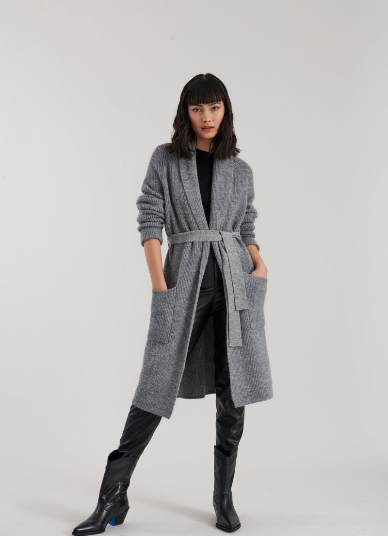 Fabriqué à partir d'un fil lesté super doux, le cardigan Harrison est coupé dans une silhouette décontractée avec un décolleté cascade sophistiqué, une ceinture amovible et une couverture complète sur le devant.