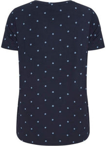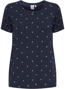 Le Lisa Tee est un t-shirt super extensible à imprimé à pois. Avec une encolure dégagée et une coupe régulières.
