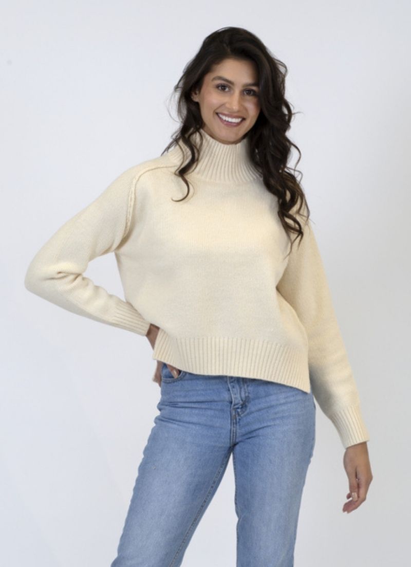 Le pull Azra Mock Neck présente des surpiqûres d'épaule, une texture côtelée et une coupe classique. Restez au chaud cette saison.
