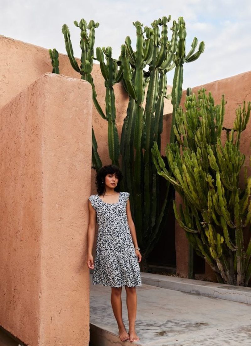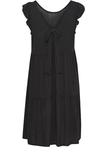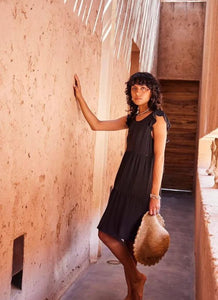 Get ready to turn heads in our Marrakech Dress! With a playful tie back and chic cap sleeves, this knee-length dress is perfect for any occasion. Confidently strut your stuff and make a statement in this unique and stylish piece.