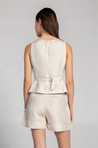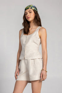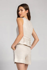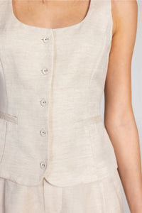 Refined tailoring meets everyday versatility with the Milano Vest. Featuring a flattering deep scoop neckline and fitted silhouette, this piece is crafted from lightweight woven suiting that balances structure with comfort. Wear it solo for a polished look or layer it under a blazer for added dimension. Front button closure for easy styling.