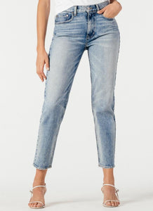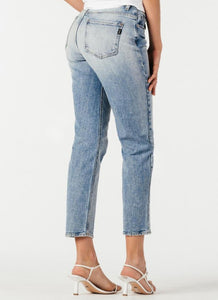 Un classique MOD/AM. Ce denim bleu clair a été poncé à la main sur tout le pantalon pour un look vintage inspiré de l'esthétique californienne des années 80. Créé à partir de tissu Ludwig, donnant au denim la sensation d'un denim tout en lui permettant de s'étirer. Taille avant de 12 pouces avec une jambe décontractée et effilée. Un jean ample taille haute conçu pour flatter toutes les formes et toutes les tailles.