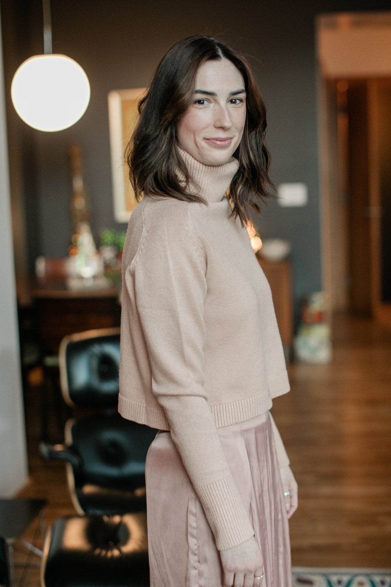 Le pull à col roulé Pugliese est un élément essentiel de la garde-robe. Confectionné dans un tissu doux, il présente un col roulé flatteur et s'agence parfaitement avec la jupe Buzzco.