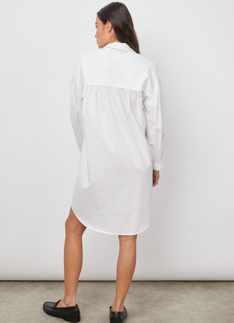 Ayez l'air raffiné du travail au week-end avec cette robe chemise surdimensionnée surélevée. Cette robe chemise blanche impeccable présente une épaule descendue, un ourlet en pan de chemise et des poignets élastiques.