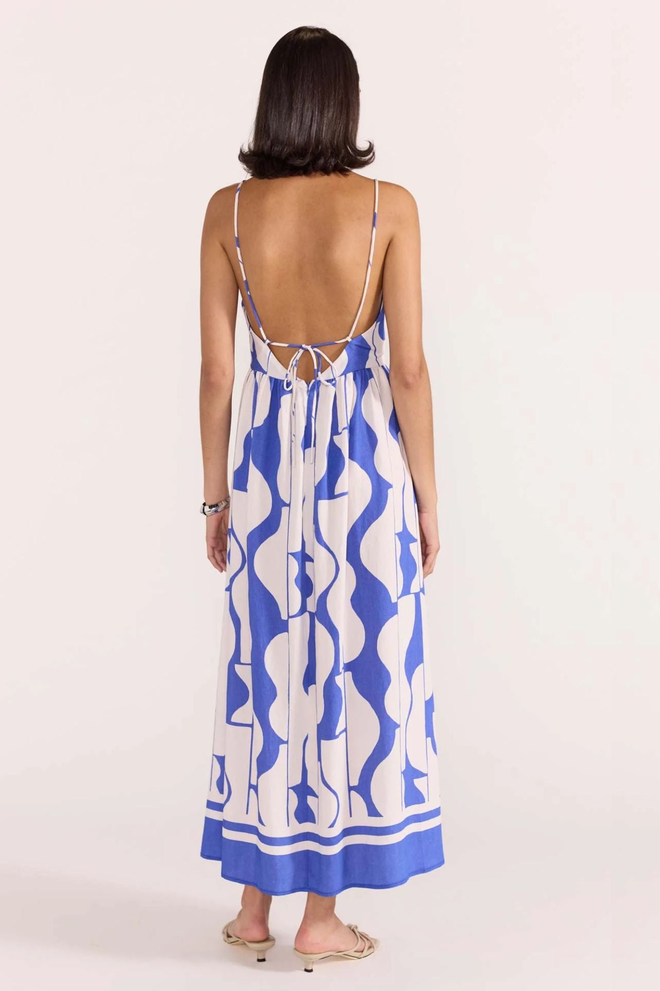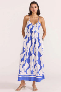 Utilize this Santi Sundress to make a statement! With a striking abstract print, this midi dress offers both comfort and fashion, complete with an adjustable strappy back for a custom fit. Designed specifically to highlight your individual style.