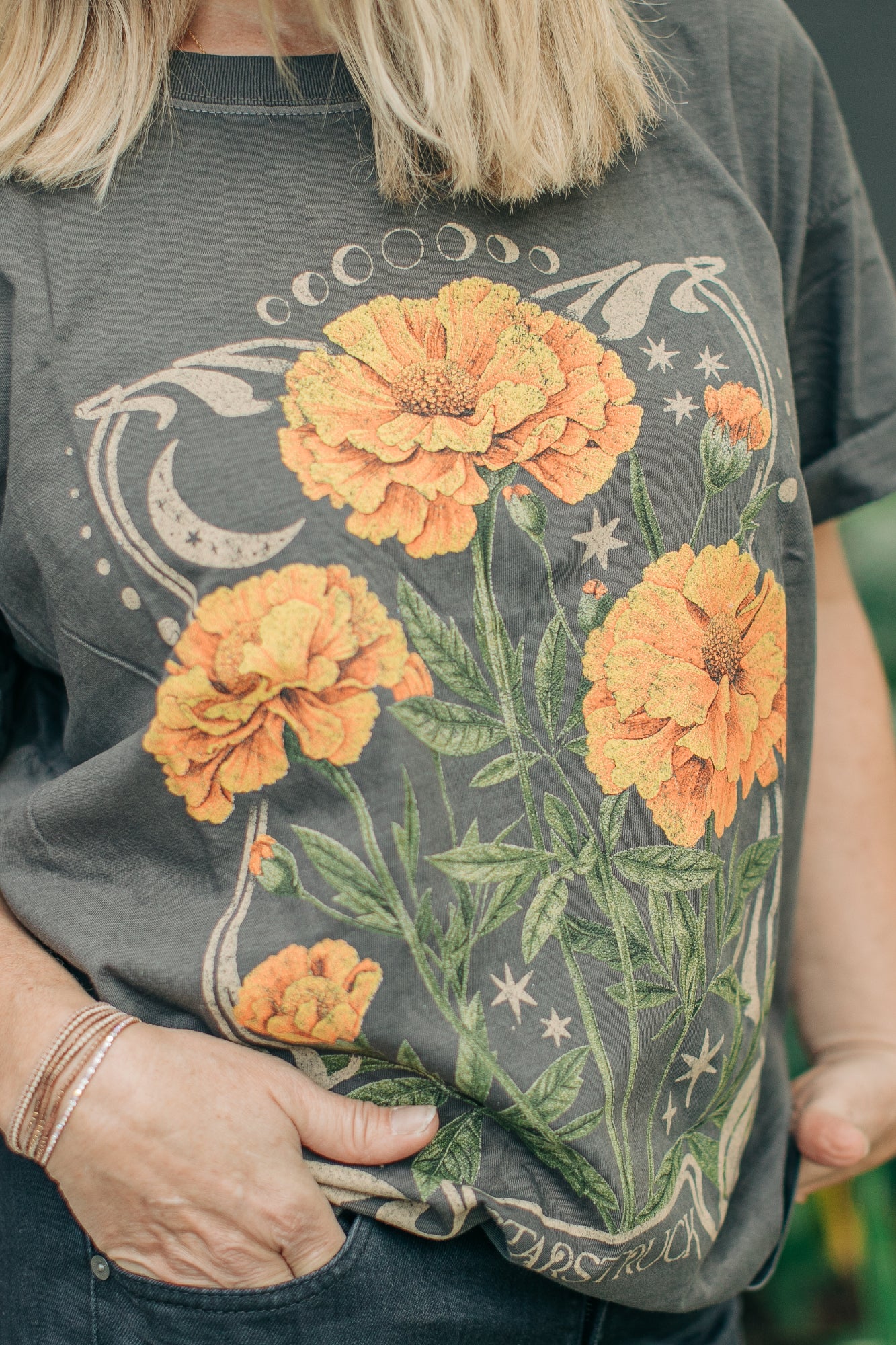 Experience the perfect blend of comfort and style with our Starstruck Boyfriend Tee. Made from 100% cotton fabric, this tee has a soft and high-quality feel, ideal for all-day wear. The pigment dye gives it a vintage look, while the rolled and tacked sleeves add a touch of fashion. Its oversized, "boyfriend" style fit is both flattering and comfortable.