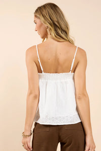 Elevate your summer style with the Sundream Eyelet Tank Top! The smocked design with elastic ruching provides a flattering and comfortable fit, while the adjustable shoulder straps allow for a personalized look. Perfect for any warm weather occasion, this top will be your go-to for effortless style and comfort.