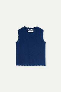 Effortless elegance meets everyday comfort in this navy blue knit and lace top. The sleeveless silhouette features a classic round neckline finished with ribbed trim for a polished look. Versatile enough to layer or wear solo, this piece transitions seamlessly from casual outings to relaxed evenings. The combination of soft knit and delicate lace detailing adds visual interest while maintaining a refined aesthetic.