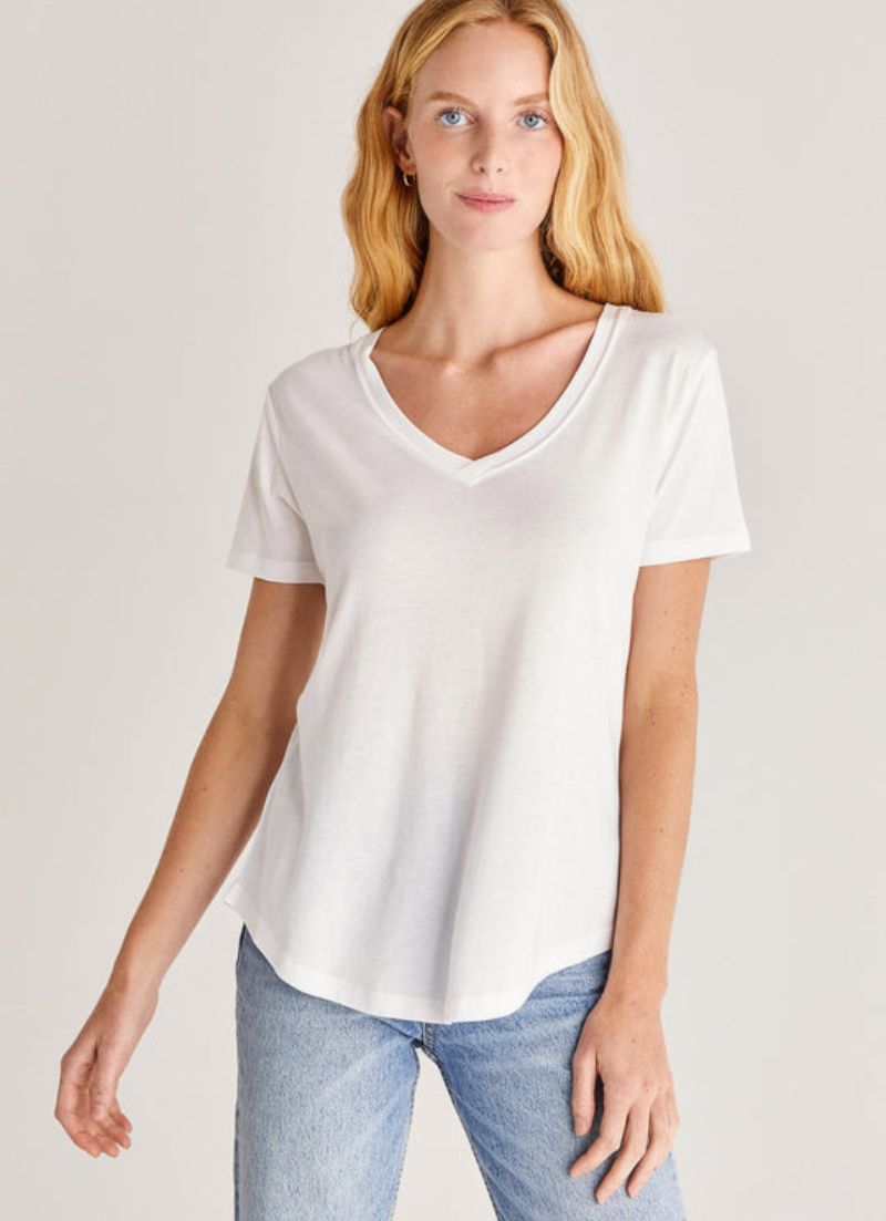 Le t-shirt à col en V Kasey Modal est fabriqué à partir d'un nouveau tissu Micro Modal doux et frais. Il présente un décolleté classique qui a juste la bonne profondeur et le modal ajoute un look et une sensation haut de gamme, séparant ce haut du reste de vos t-shirts décontractés.