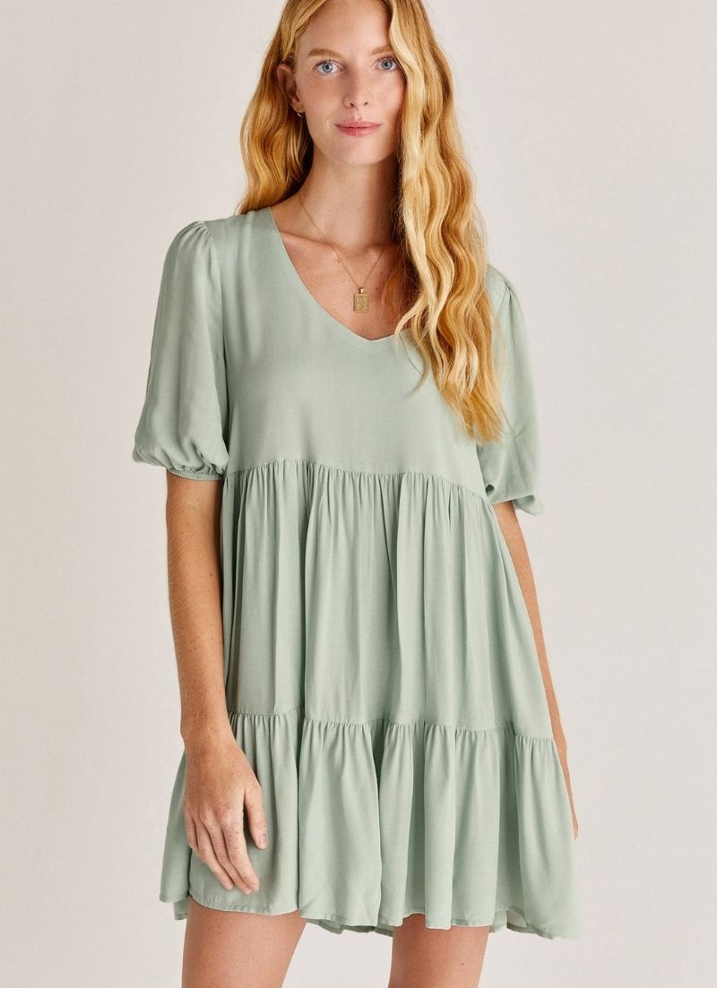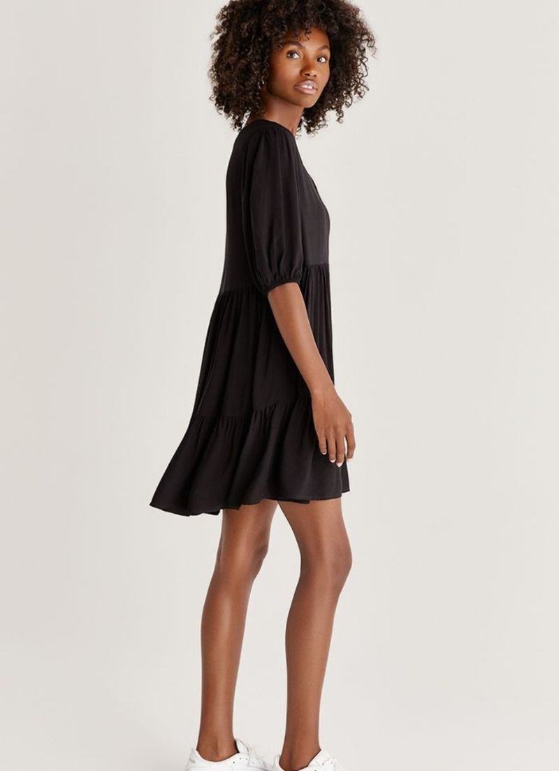 Les détails froncés et la silhouette fluide à plusieurs niveaux font de la mini-robe Ryker votre choix pour de nombreuses occasions. Complétez-le avec des bottes épaisses ou restez décontracté avec des mocassins ou des sandales.