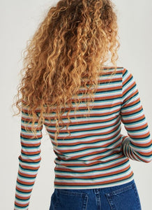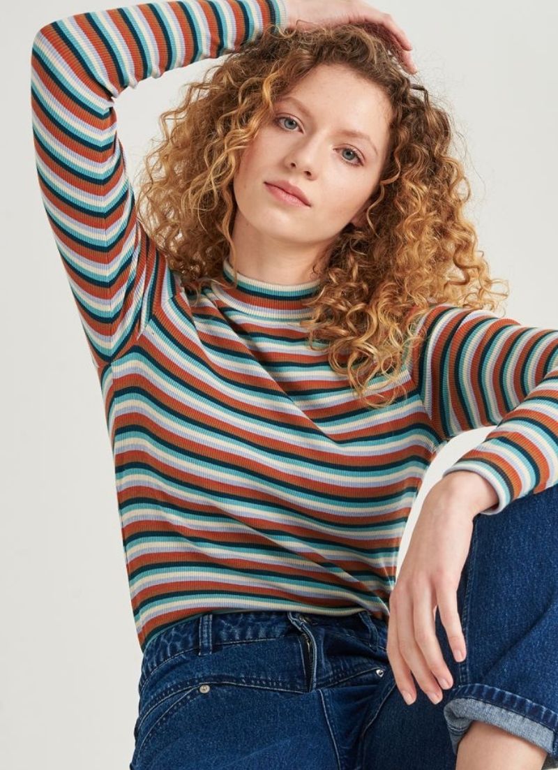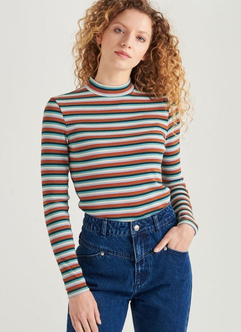 This ribbed long sleeve top by 24 Colours features a high neckline.