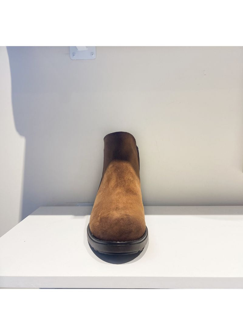 A short suede ankle booties features a zip closure, round toe and a slight heel (approximately 1inch) by Paul Urban. These are a great go to boot that can dress up an outfit while not compromising comfort.