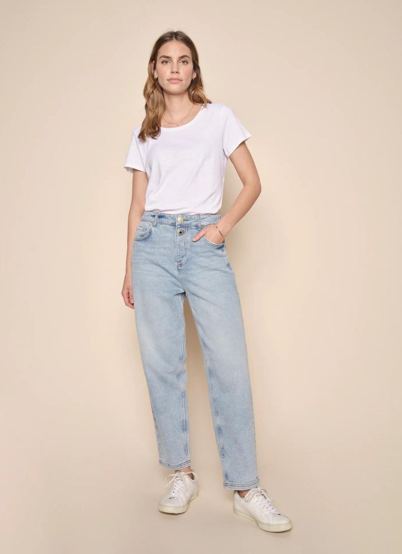 These jeans are designed in a cool and trendy boyfriend fit with a high waist and button closure. Finished with a brown leather badge at the back. We would wear them with almost anything – we especially like them with a tucked-in tee or loose shirt and a pair of sandals!
