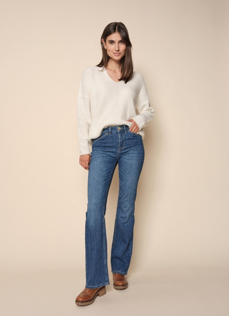 Give your wardrobe a trendy upgrade with these stylish jeans. They are designed in a flattering flare fit with a high waist and finished with a cool leather badge at the back. Style with a classic shirt or a flowy blouse – and don’t forget the groovy boots!