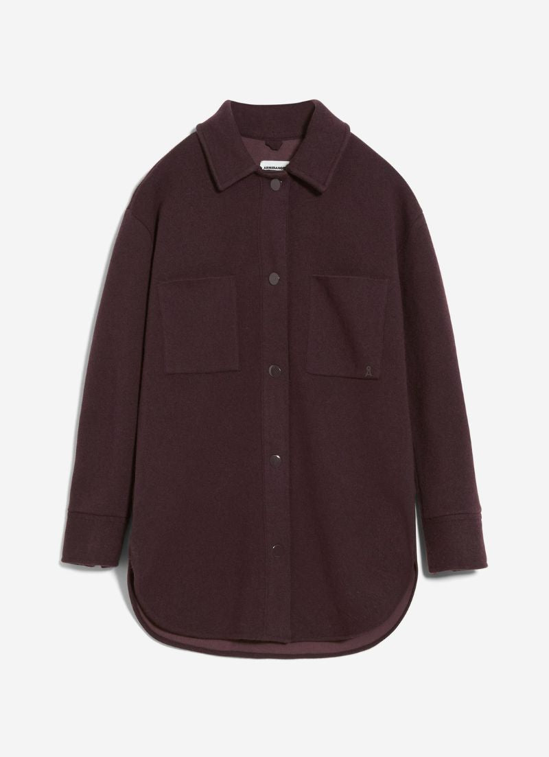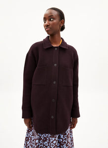 The Almaraa is a knit jacket with two large pockets in the front and a button closure.