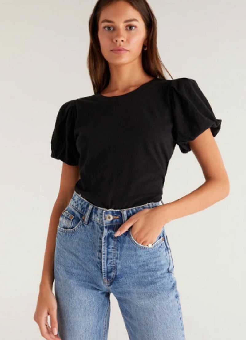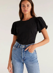 Puff sleeve perfection is the Alyce Slub Top! This fun and feminine crew neck top features an exaggerated puff sleeve, slightly fitted encased elastic hem and can be worn tucked or untucked.