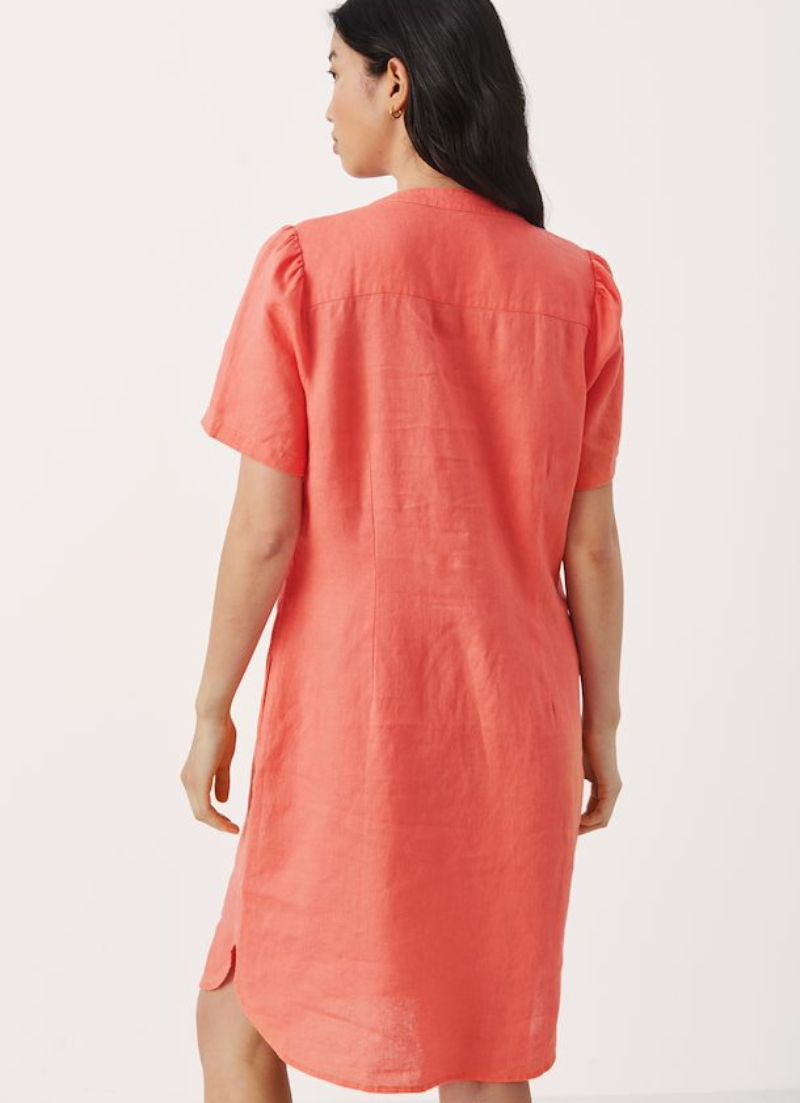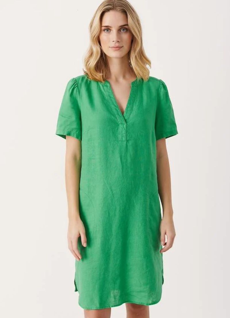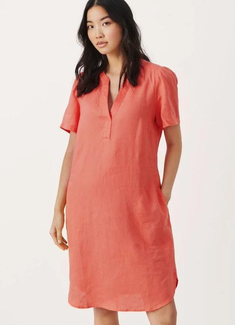 A beautiful, easy to throw on regular fit dress featuring short sleeves and pockets. Falls just by the knees.