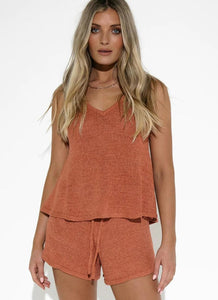 This sleeveless tank top features thick shoulder straps, a v-neck and a flowy relaxed fit.