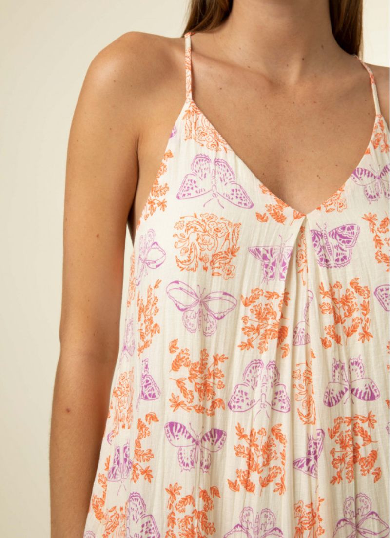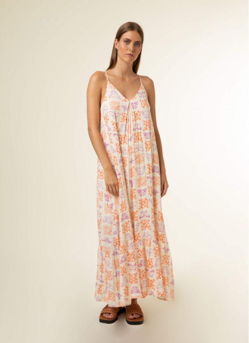 Anais is the perfect dress for spring and summer. Featuring a maxi length, flowy cut, skinny straps and a beautiful print all over.