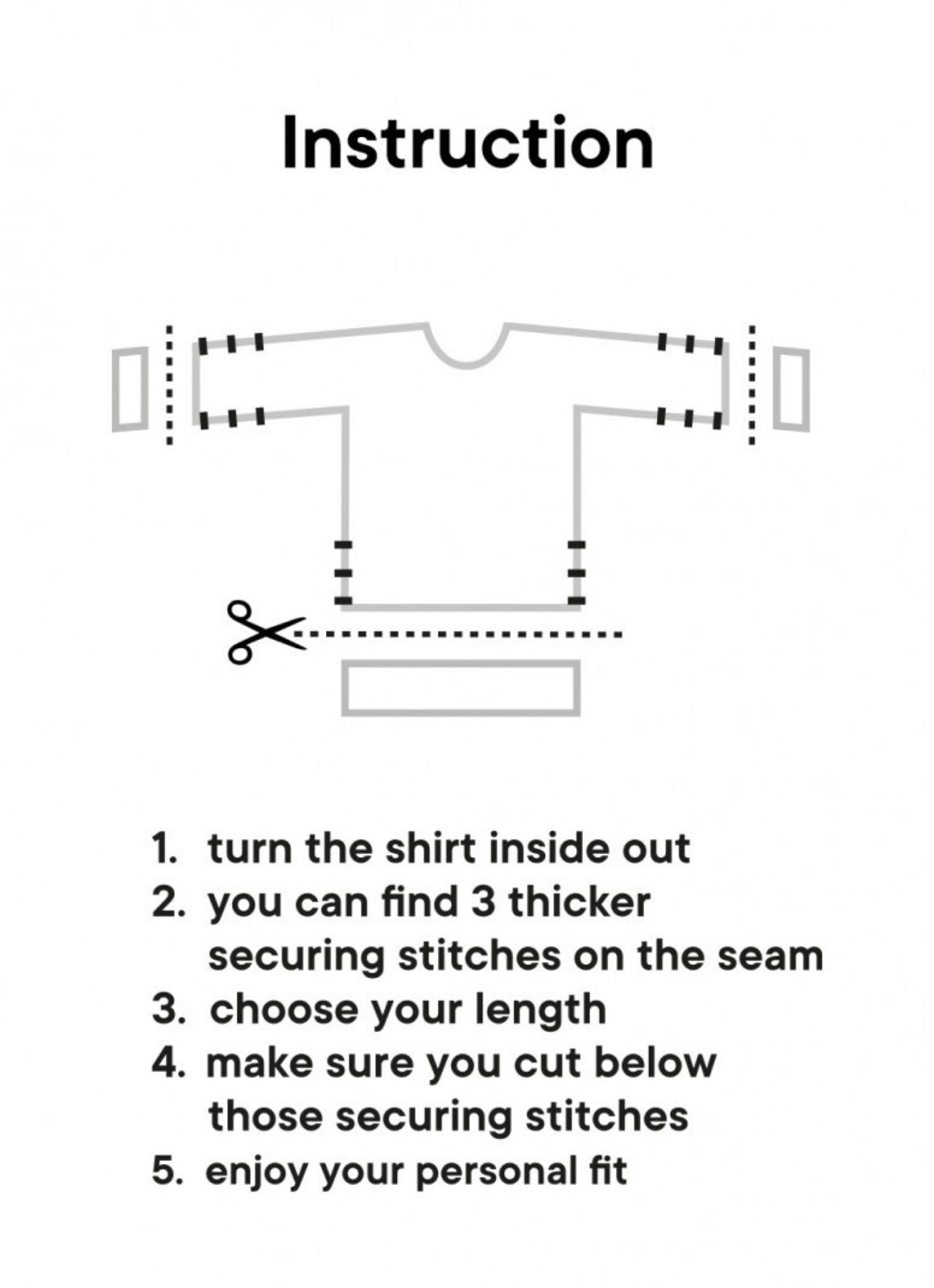 BEAA CUSTOMIZED is as long as you want it to be. The top can be shortened in just a few simple steps, is ideal for layering looks and lies very soft on your skin. Made of 100% organic cotton.