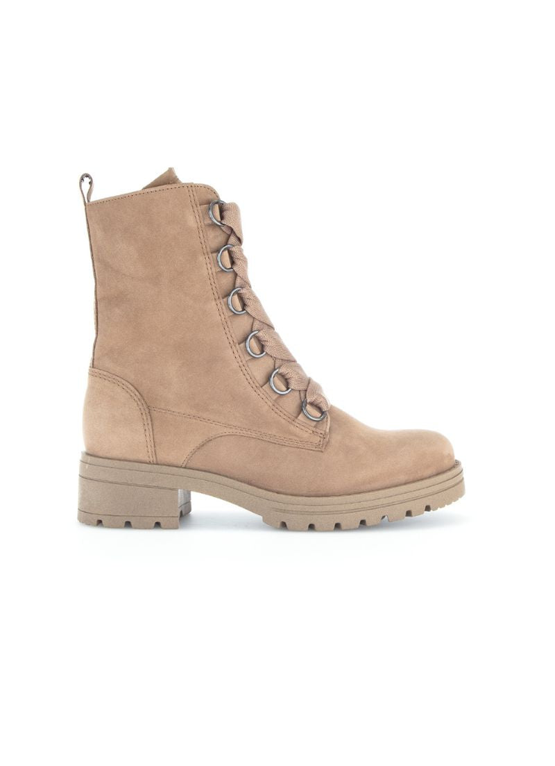 This Army Boot from Gabor features a 5cm heel, a zipper closure on the inside and a thick lace to tie up on the front.