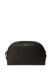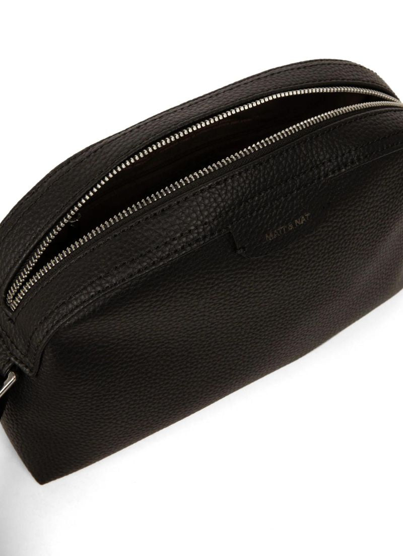 The arrow is a crossbody bag in a half moon shape. It features a zipper closure and an adjustable strap.