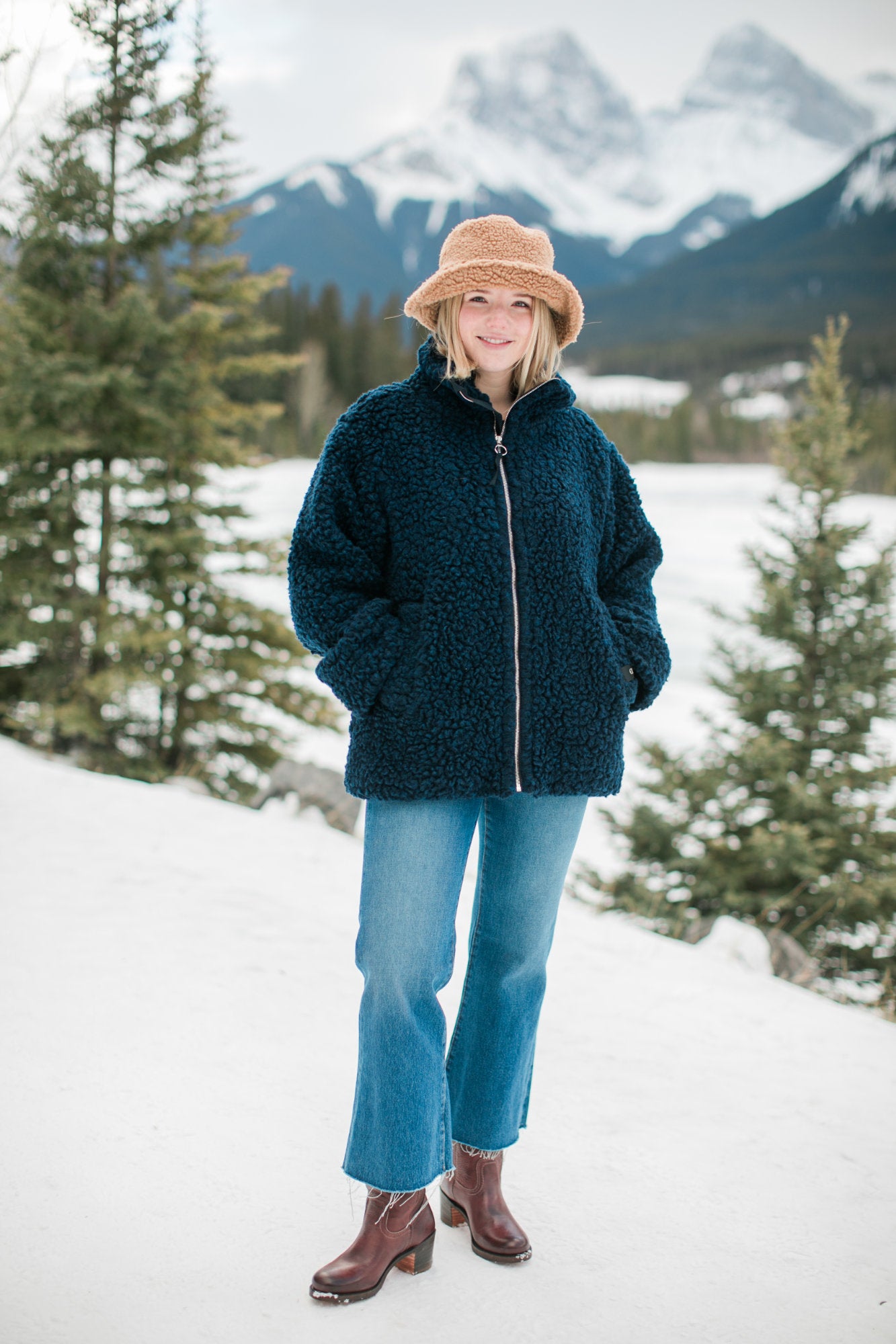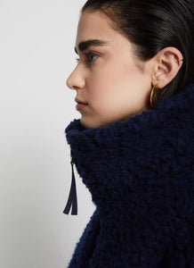 The coziest wool-blend teddy jacket you'll ever find. Made in a realxed fit, a chunky high neck and pockets. The gorgeous deep navy is the perfect neautral colour to wear with all of your fall or winter outfits.