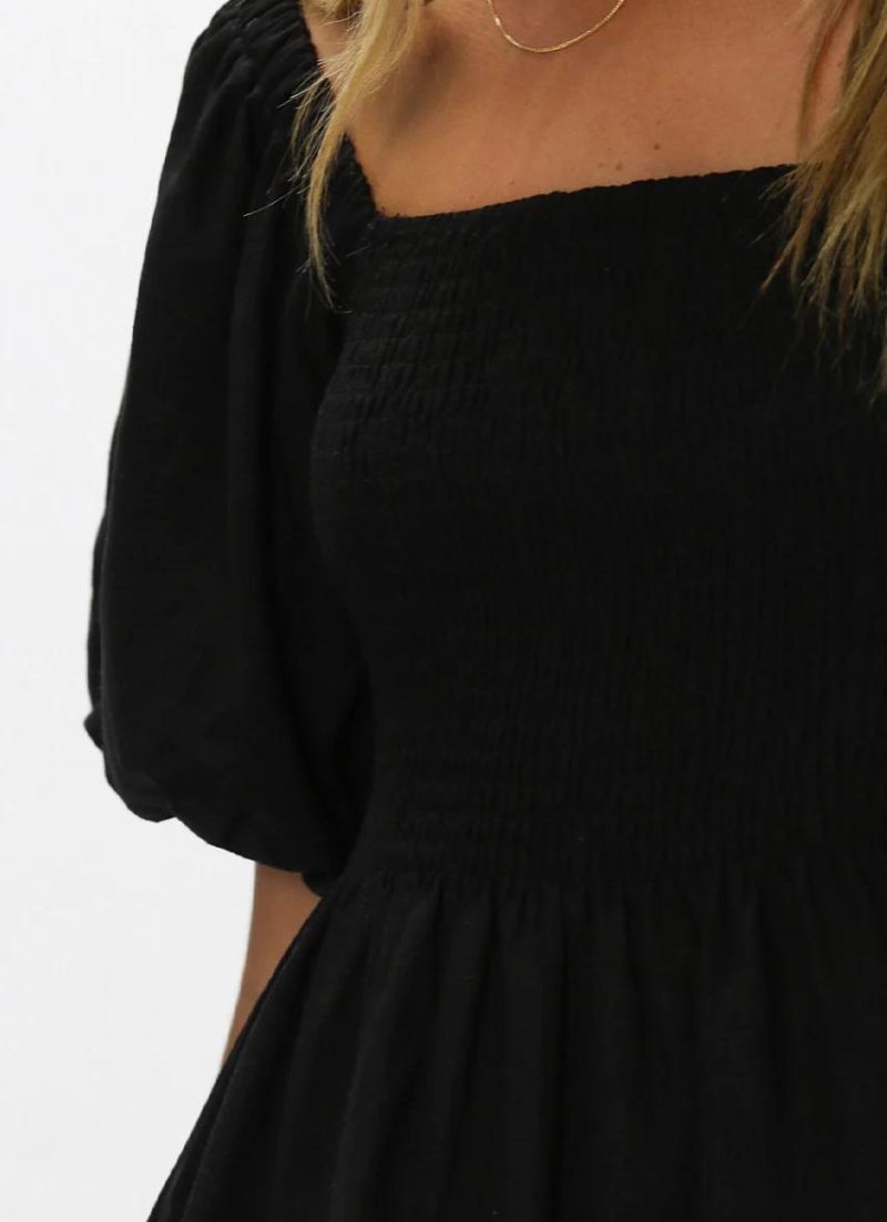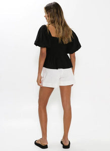 The Aster Top features a square neckline, short puff sleeves and frilled peplum detailing.
