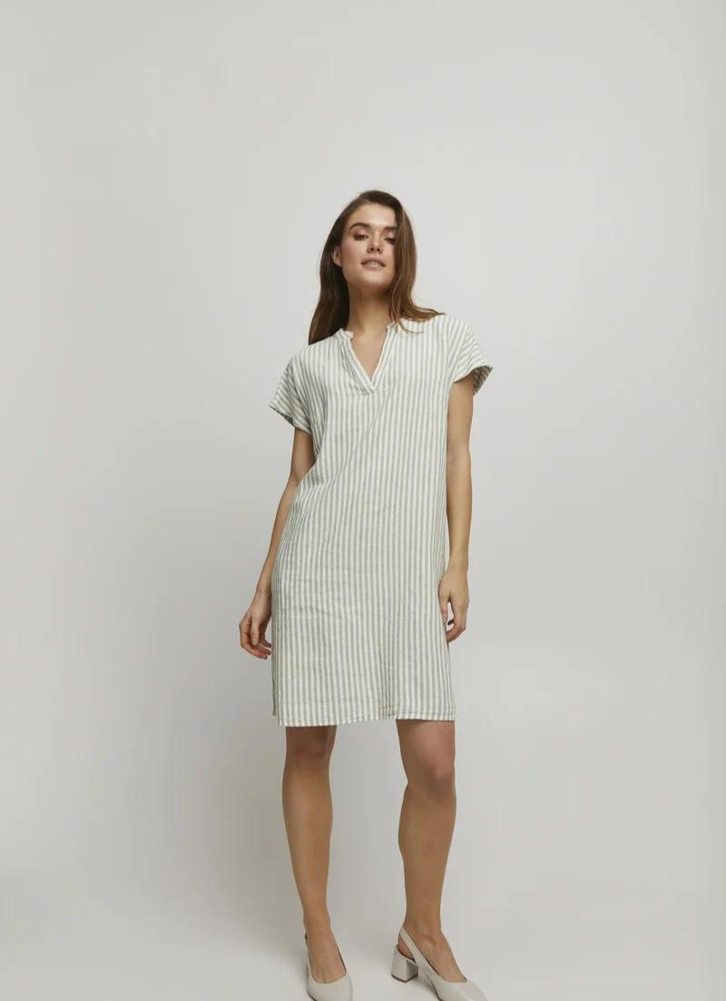 The B.Young Falakka V Neck Dress is designed for stylish, effortless comfort. Crafted from a lightweight linen fabric, this dress features a classic V neckline for a touch of contemporary edge. Its striped pattern and relaxed silhouette make it the perfect casual addition to any wardrobe.