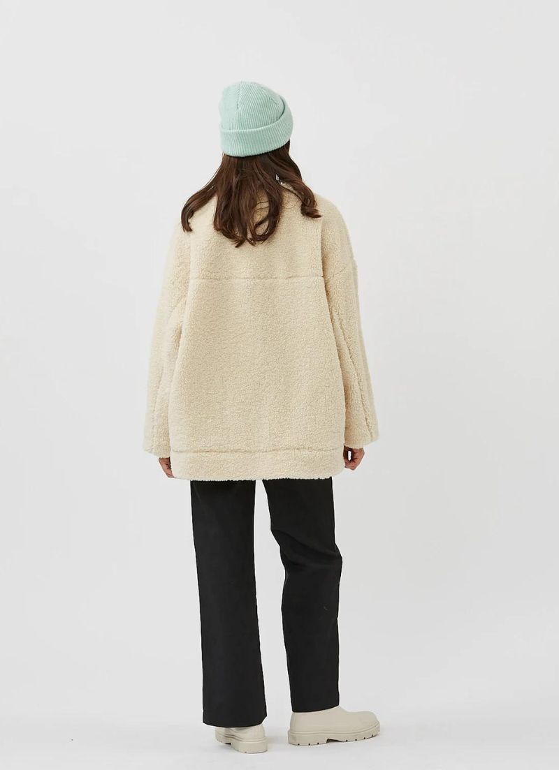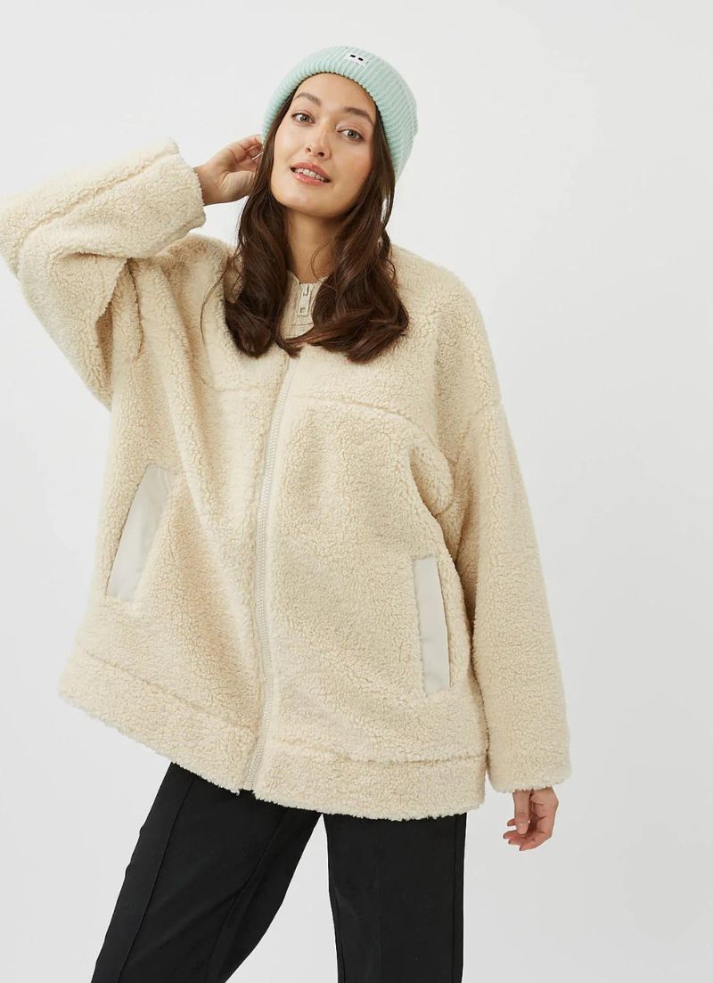 Bavory is a cool midi-length jacket in a teddy fabric. The jacket has an oversized fit and features dropped shoulders for a casual look. It is detailed with zipper closure, two big side pockets and crew neck.