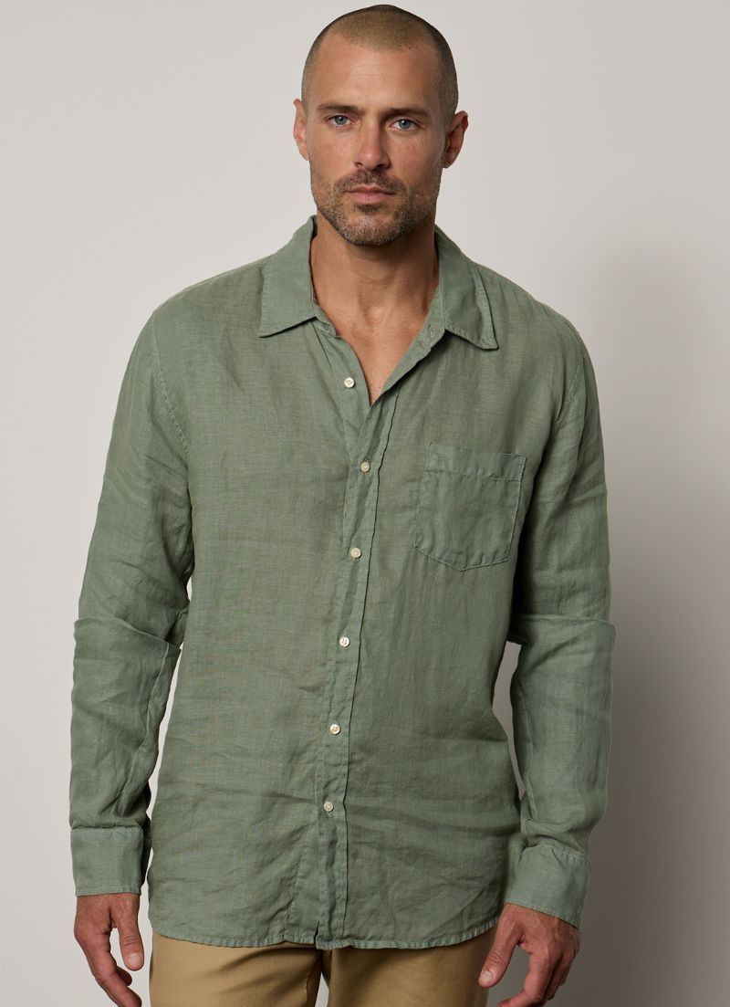 This lighweight men's shirt is made from linen and features a relaxed collar and long sleeves. This shirt is versatile, breathable and perfect for warmer weather.