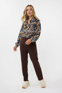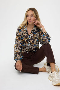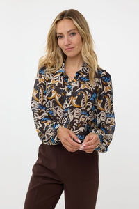 Get ready to turn heads with our Blouse Vneck Elegant Leaves! This button-through blouse features a beautiful print and is made of 100% viscose for a luxurious and comfortable fit. Perfect for any occasion, this blouse will add a touch of elegance to your wardrobe.