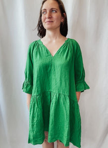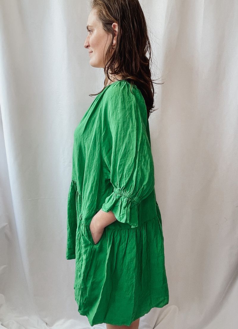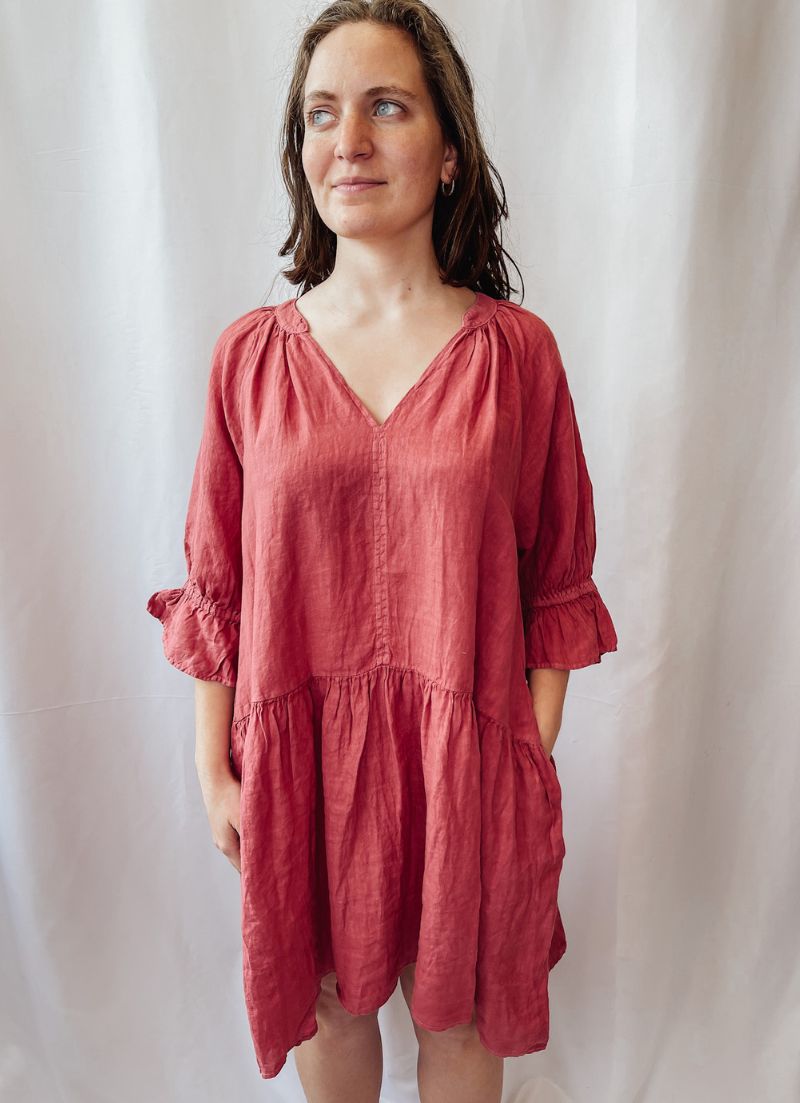 The Bria Dress is a knee length dress featuring a relaxed fit, a v-neck and 3/4 length sleeves. It drops longer at the back and comes in the two perfect colours for spring and summer.