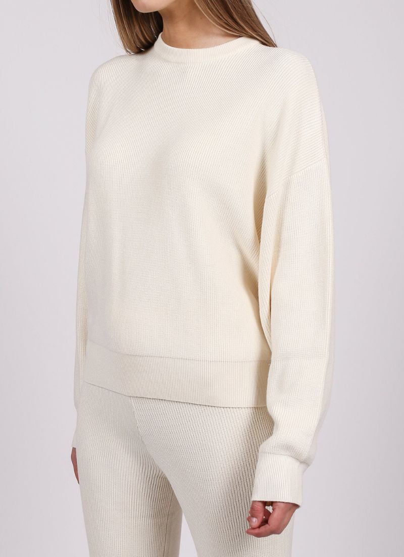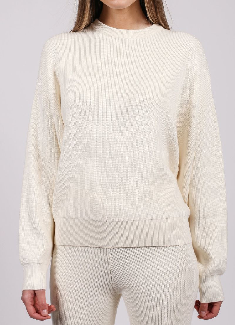 The Ribbed Crew Neck Sweater is a relaxed fit with a long body and raglan sleeve. Made from our buttery soft ribbed fabric.