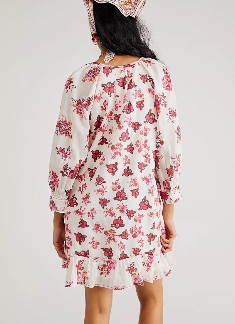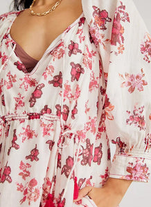 Just as effortless as it is essential, this stunning mini dress is featured in a femme floral print with exaggerated sleeves, keyhole feature at front, and ruched drawstring waist at front for added dimension.