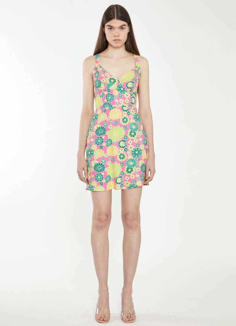 The Caroline dress is an iconic design featuring a 60's-inspired print and cut. Its thick straps offer maximum comfort and support, while its mini length and v-neckline add a touch of elegance. A timeless piece to be treasured for years.