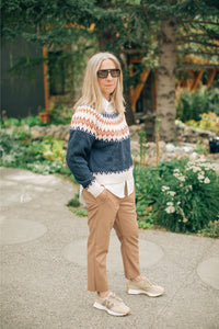 A fresh take on the timeless Fair Isle, this chunky crew brings cozy sophistication to cooler days. Expertly crafted in 100% cotton, it delivers a soft, breathable feel with a beautiful, weighty texture. The relaxed yet polished fit—finished with ribbed trims and an easy high-hip length—reflects Autumn Cashmere’s signature blend of comfort, craftsmanship, and modern style.