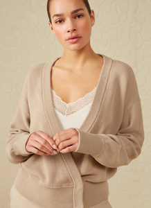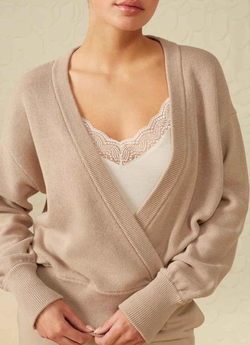 Discover the comfort of this well-crafted wrap cardigan. Featuring a v-neck, long sleeves, and dropped shoulder seams, it offers a relaxed and versatile look. Secured with four buttons on the inside, it ensures a snug fit!